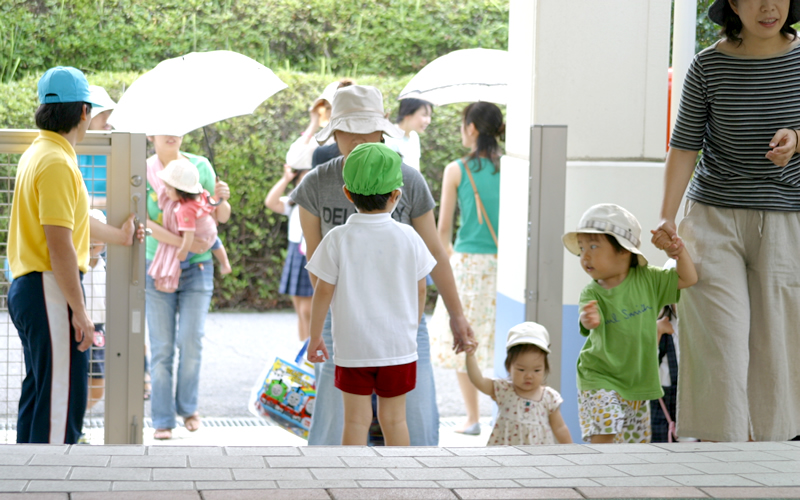 幼稚園のバスや、保護者の送りで登園します。