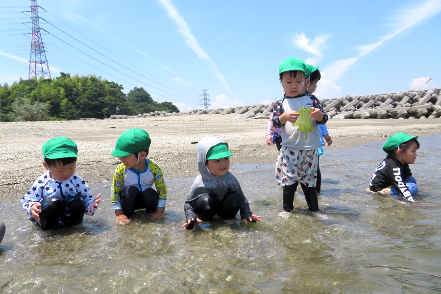 砂や水に直接触れて海を体験します。